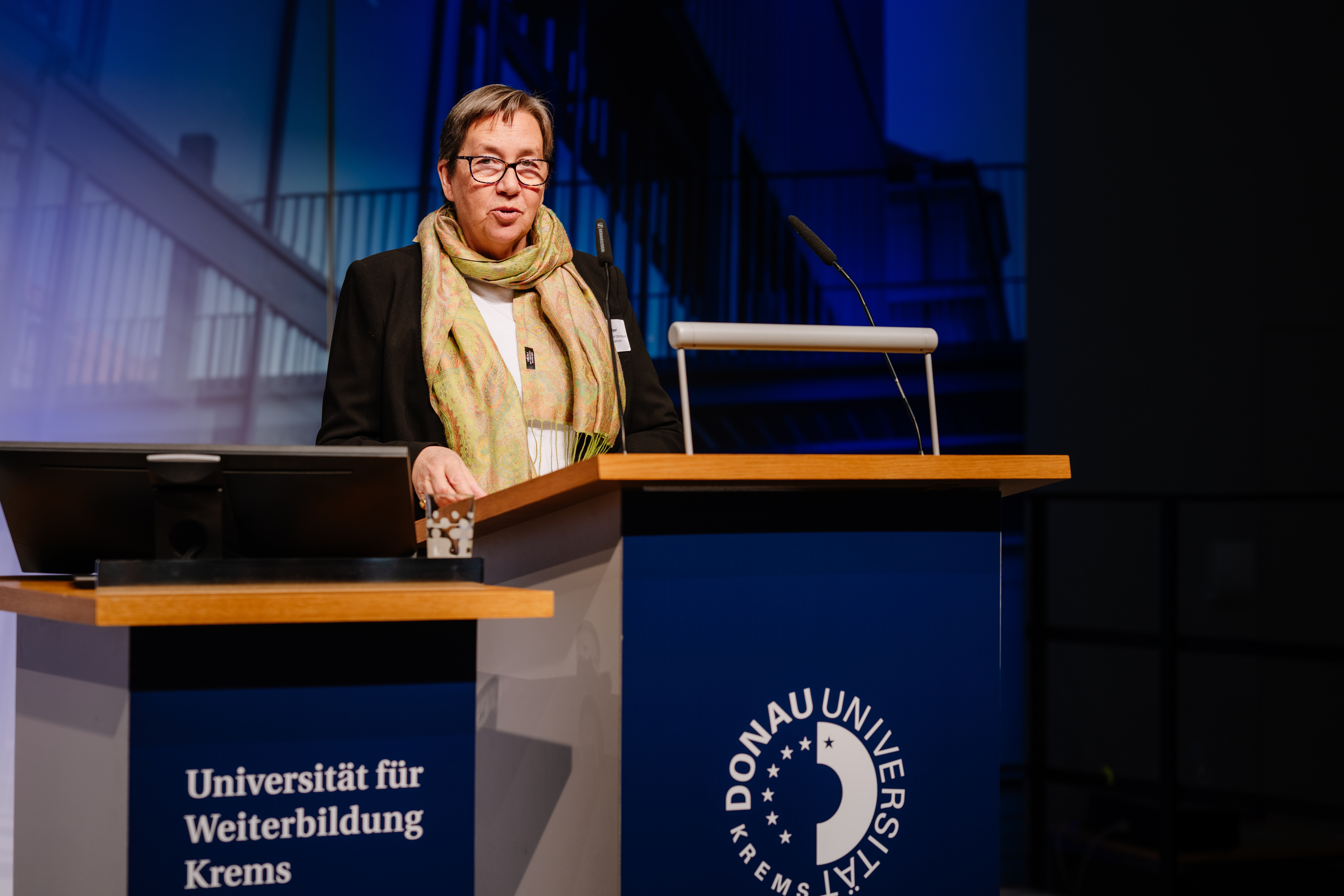 Maximilian Veichtlbauer, Vorsitzender der Hochschülerschaft der Universität Krems, veranschaulichte das breite Spektrum an Themen, mit denen Studierendenvertreterinnen konfrontiert sind, und betonte die Bedeutung des regelmäßigen Austauschs mit Kolleg_innen. Anna-Katharina Rothwangl, Leiterin der Österreichischen Studierenden-Ombudsstelle, hob die Herausforderungen speziell in Betreuungs- und Prüfungsprozessen hervor, die oft dann zu Konflikten führen, wenn institutionelle Mechanismen nicht greifen. Jean Grier, Präsidentin des European Network of Ombuds in Higher Education (ENOHE), beobachtete zudem einen deutlichen Trend: Studierende sind heute eher bereit, Unterstützung zu suchen, als dies früher der Fall war. Auf die Frage, wie sie selbst „the art of the ombuds“ erlernte, verwies sie auf Erfahrungen, die sie direkt im Berufsalltag gesammelt habe, da es ihrem Einstieg in den Beruf keine systematischen Weiterbildungsmöglichkeiten gab. Ihre Ausführungen unterstrichen die aktuelle Notwendigkeit strukturierter Qualifizierungswege – wie sie das neu gestartete Certificate Program Managing Conflict and Effective Dispute Resolution in Higher Education bietet.